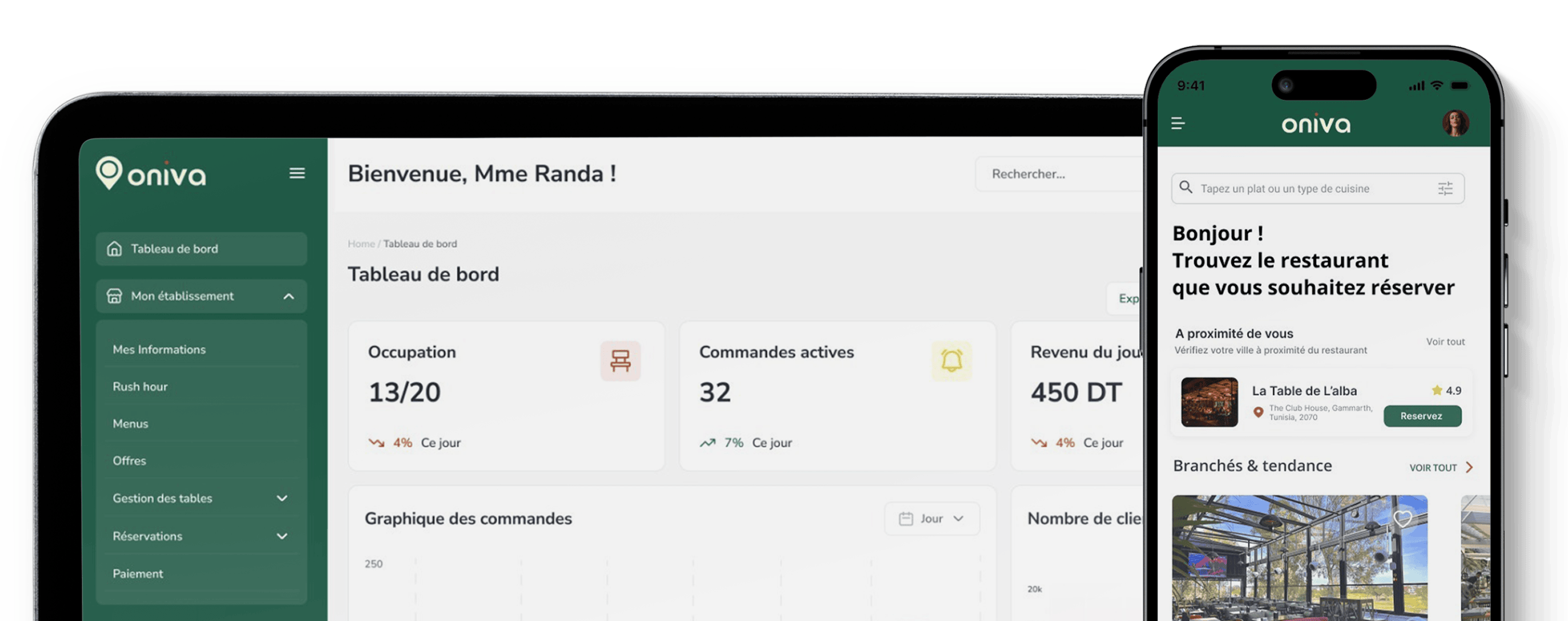 Présentez votre établissement à une communauté de clients qualifiés, géolocalisés et prêts à réserver. ONIVA met en avant votre établissement au bon moment, auprès des bonnes personnes.